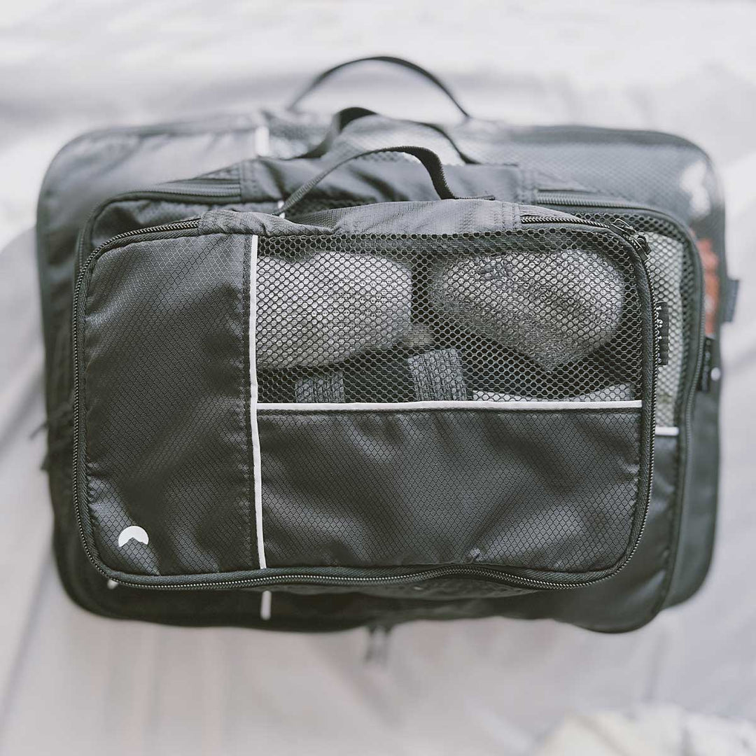 Los cubos de empaque ayudan a mantener tus pertenencias organizadas y separadas dentro de tu equipaje, así que encontrar tus pertenencias será facilísimo y te ahorrará tiempo al llegar a tu hospedaje.