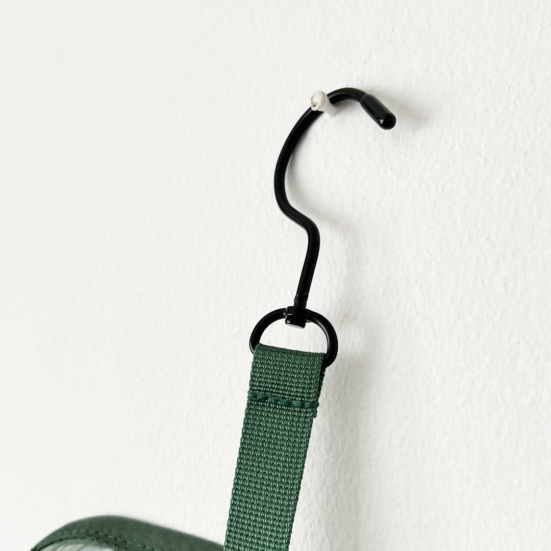 Gancho incorporado para que podás colgarlo donde sea, manteniendo todo al alcance, ordenado y fácil de identificar.