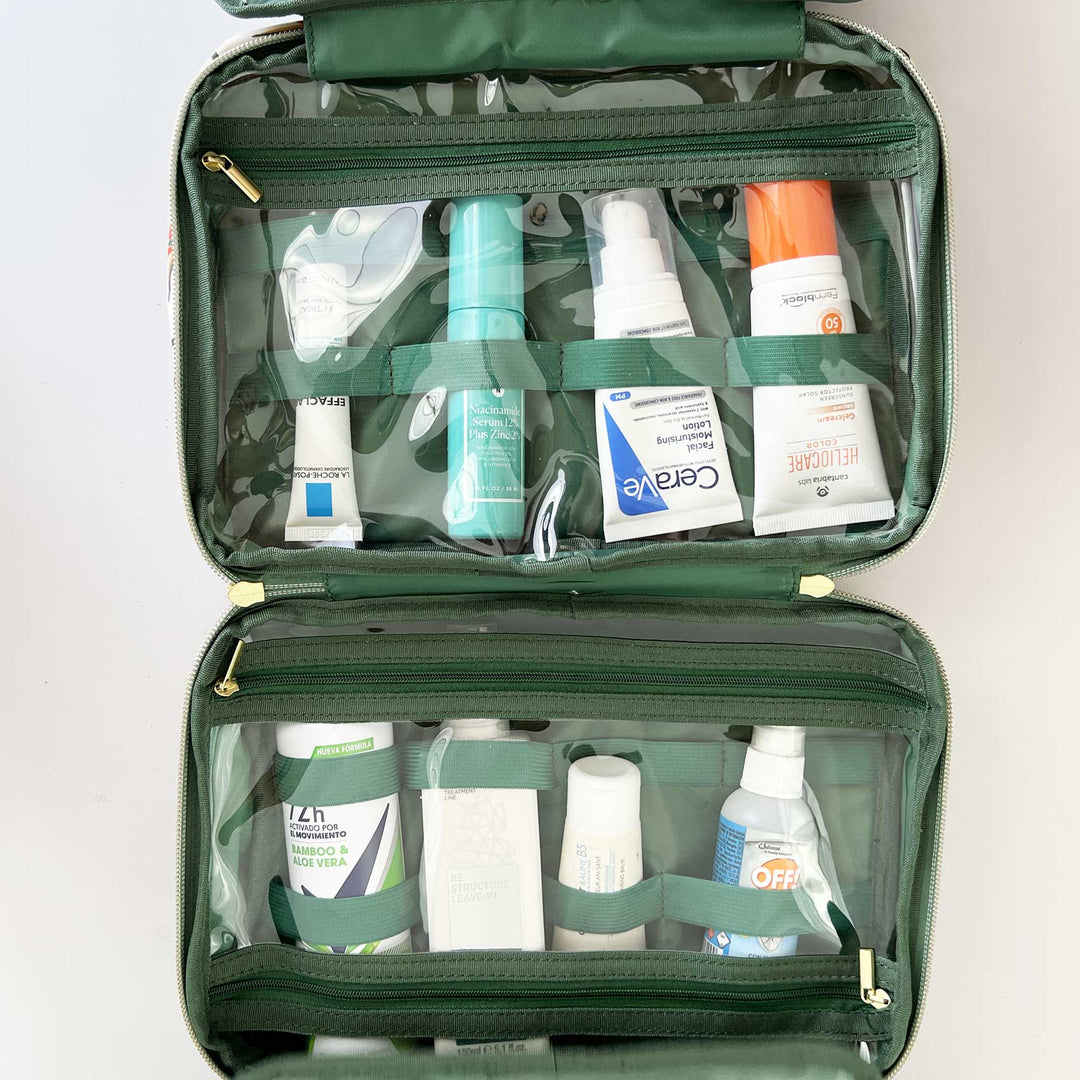 El plástico interno es perfecto para que veás todo fácilmente y no perdás tiempo buscando. Y al ser impermeable, en caso de derrame, va a ser fácil limpiar y evitar que el desastre afecte el resto de tu maleta.