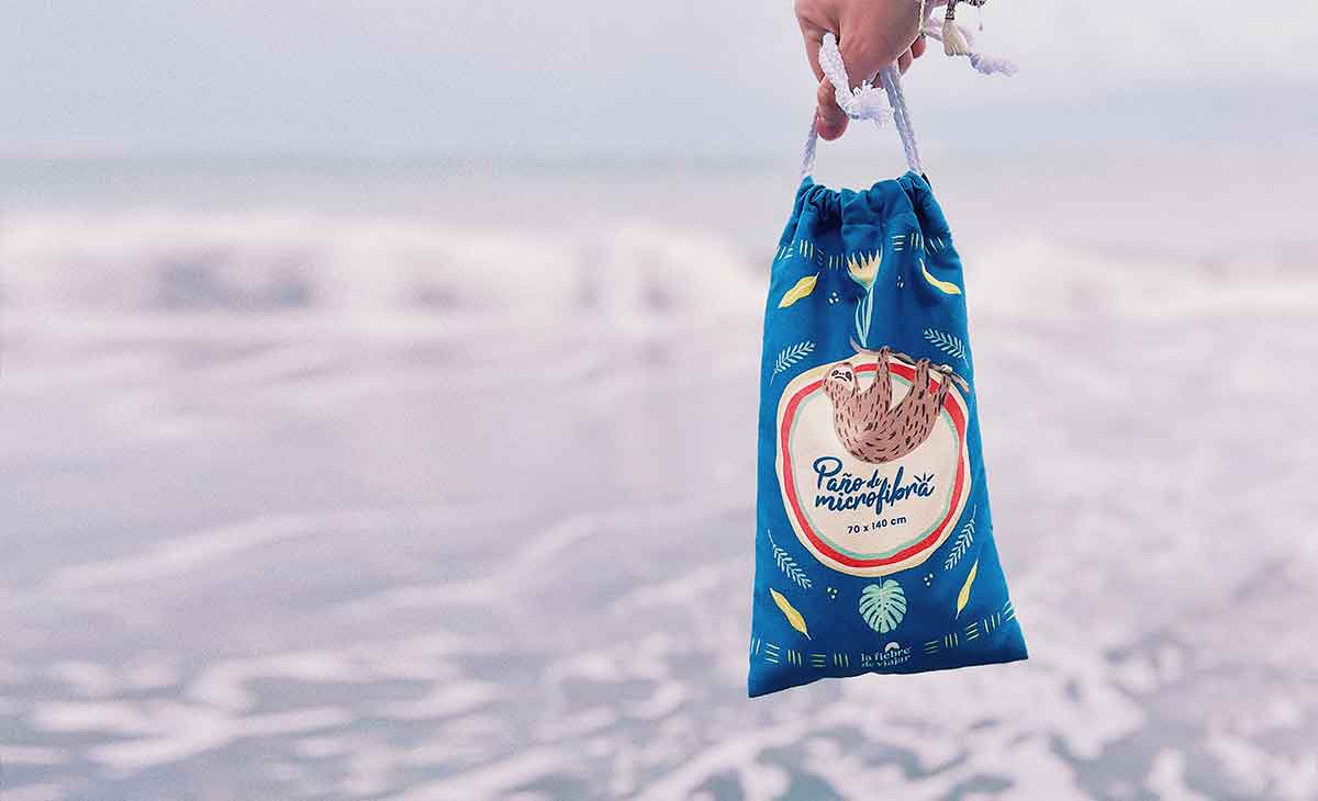Bolsita de microfibra, sus medidas son 17 x 28 cm, con una tirita para que la transportés fácilmente.