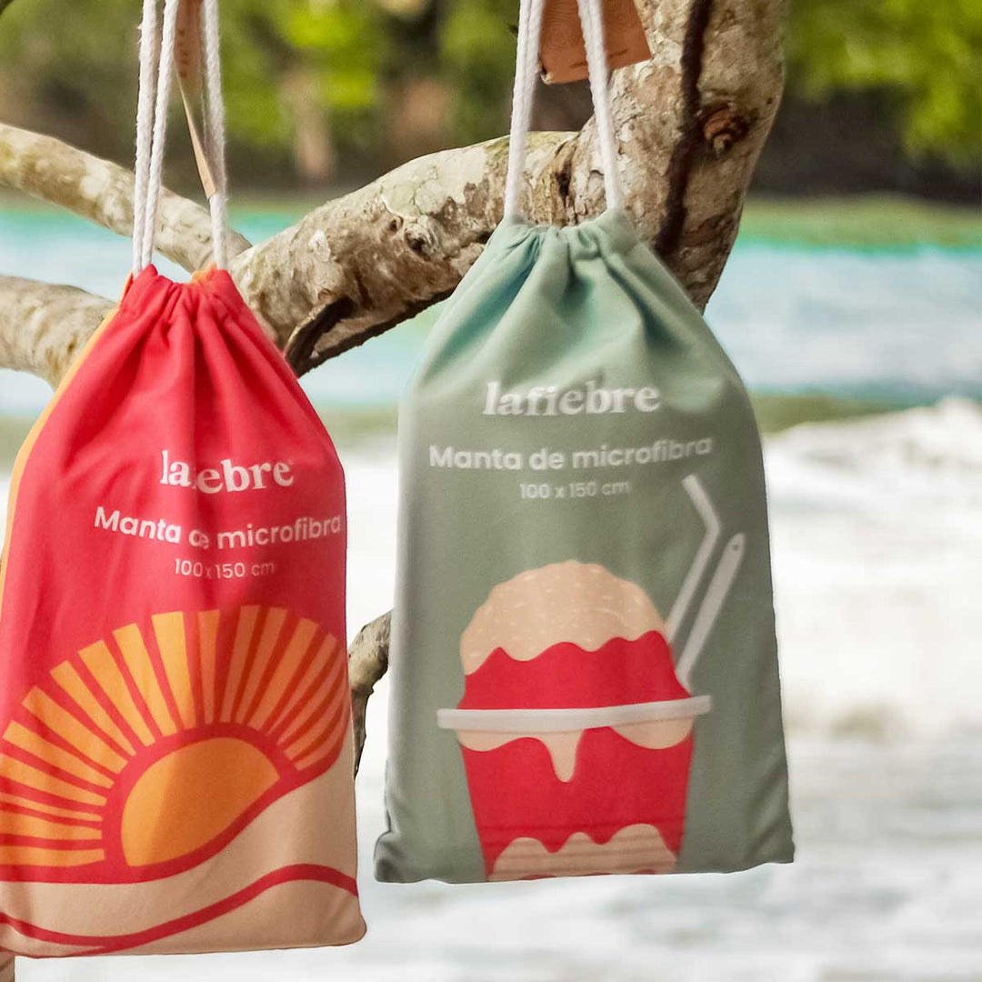 Bolsita de microfibra, sus medidas son 17 x 27 cm, con una tirita para que la transportés fácilmente.