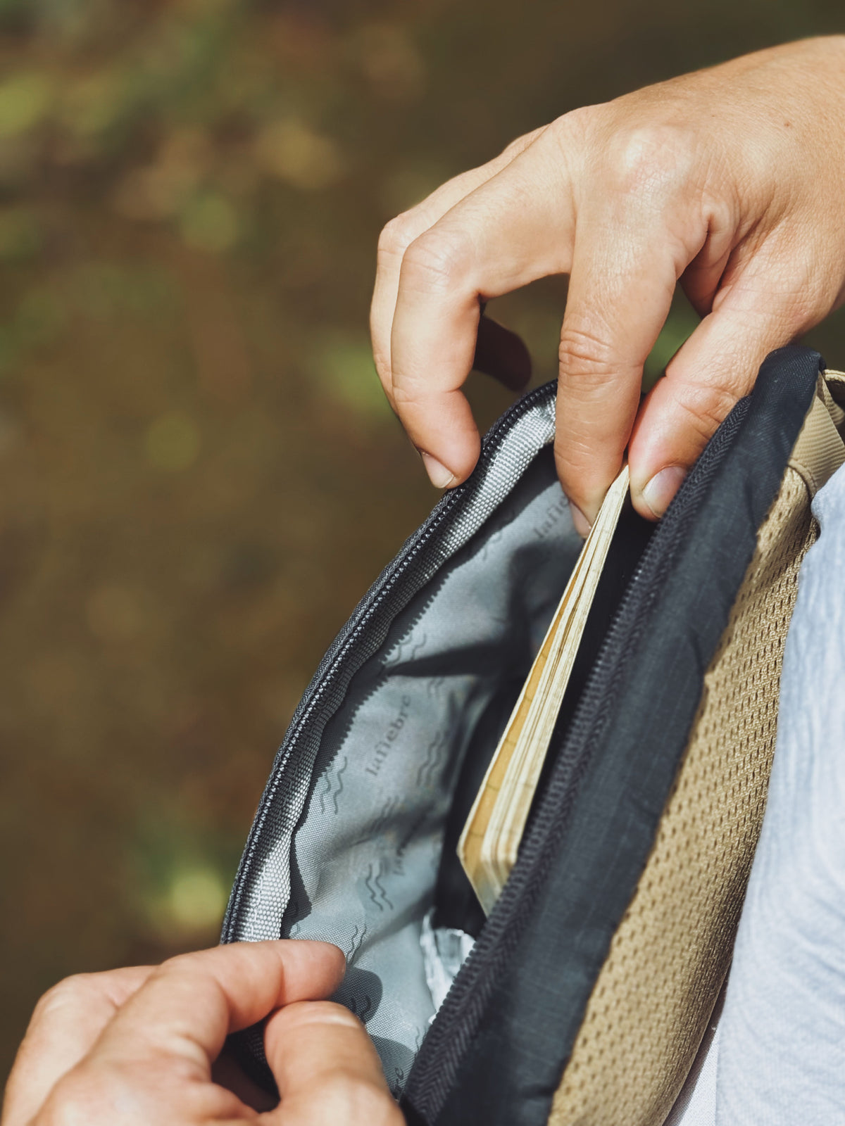 El bolsillo principal de doble cierre te permite acceder fácilmente a lo que necesitás, mientras que el compartimento frontal con protección RFID mantiene tus tarjetas seguras en todo momento.