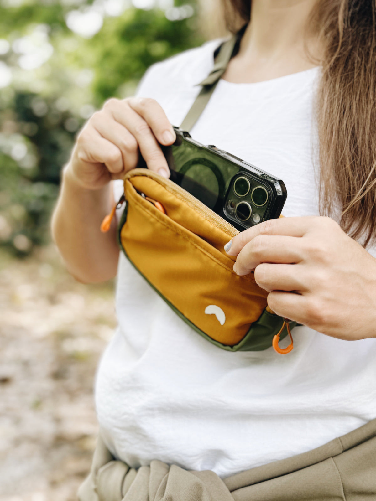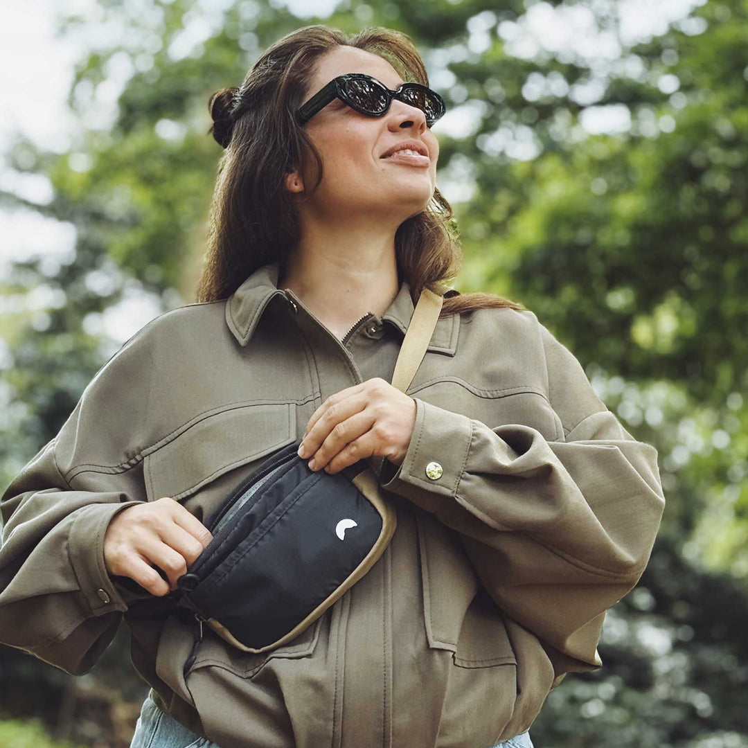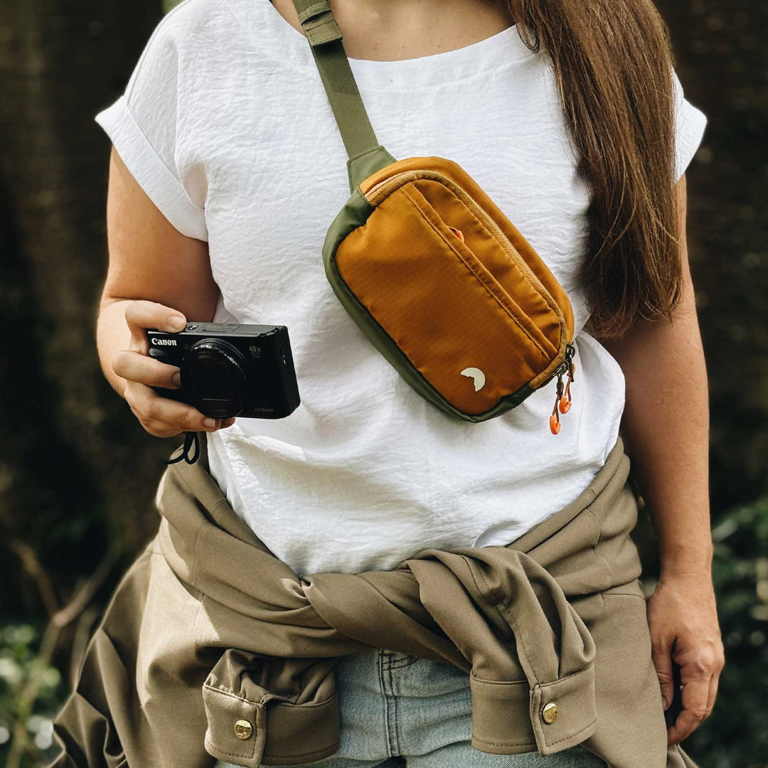 Su cinta ajustable y broche reforzado se adaptan a distintos estilos de uso, en la cintura, cruzado o al pecho, para acompañarte con libertad.