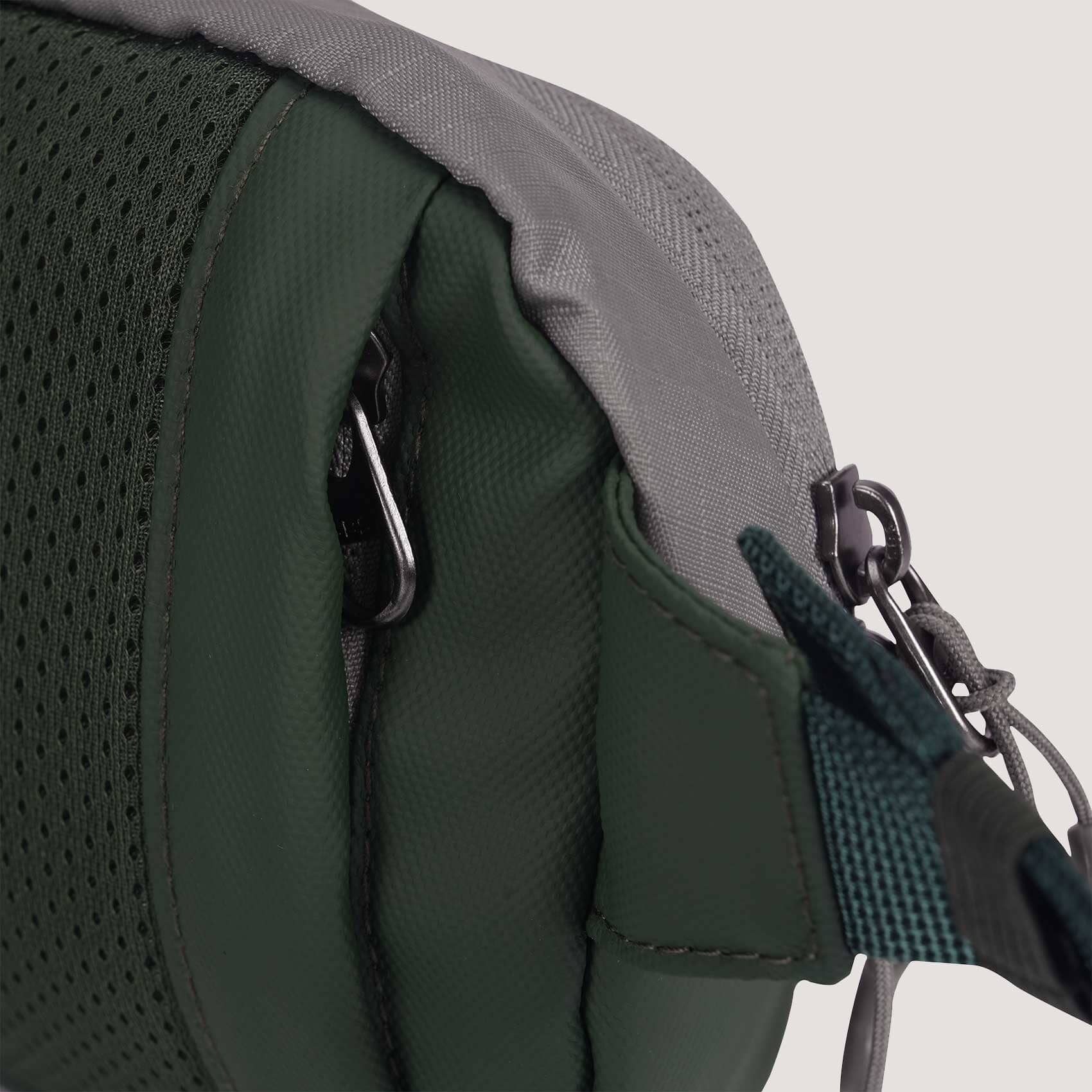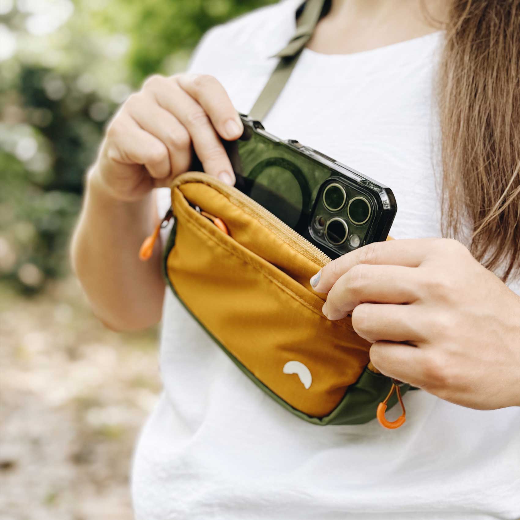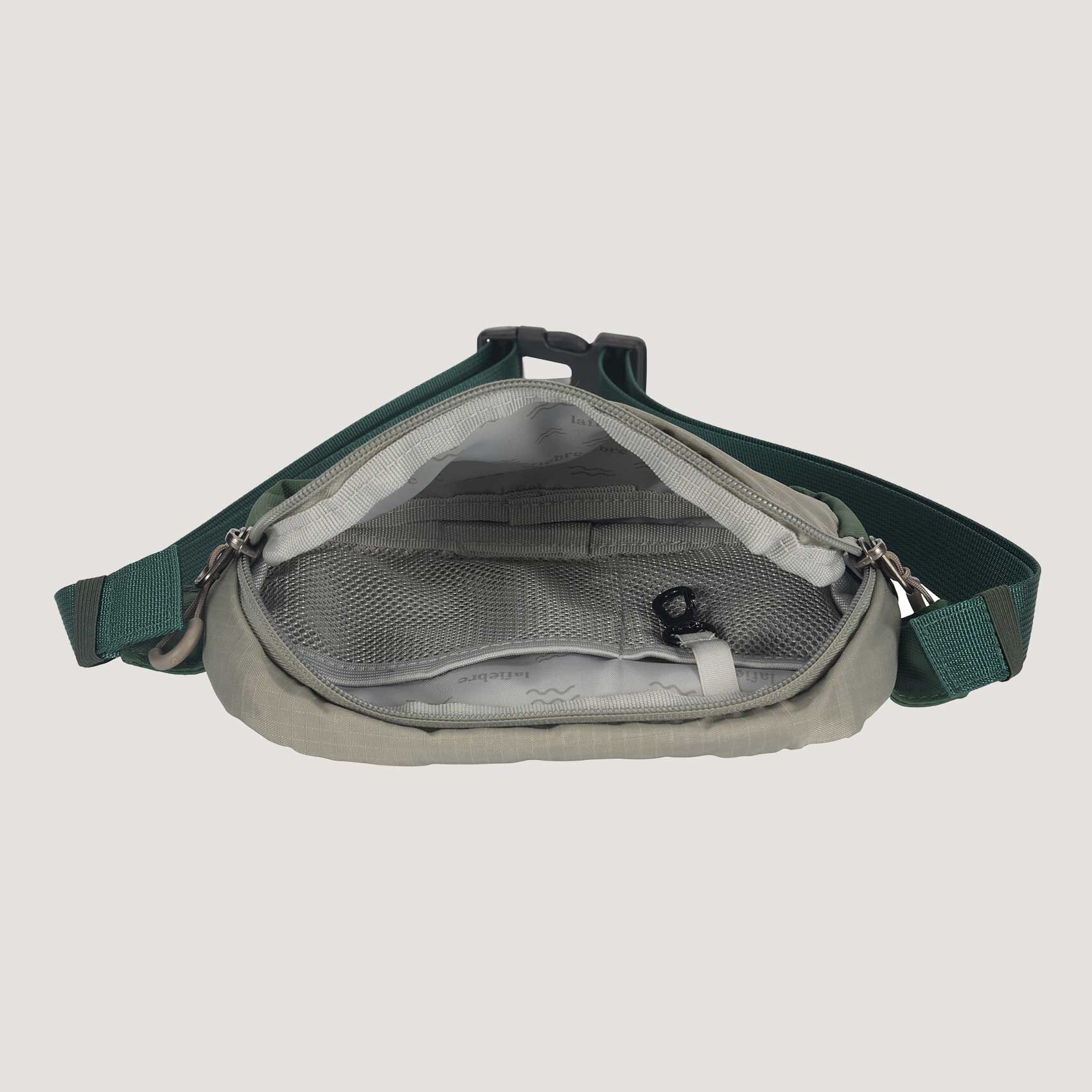 Su cinta ajustable y broche reforzado se adaptan a distintos estilos de uso, en la cintura, cruzado o al pecho, para acompañarte con libertad.