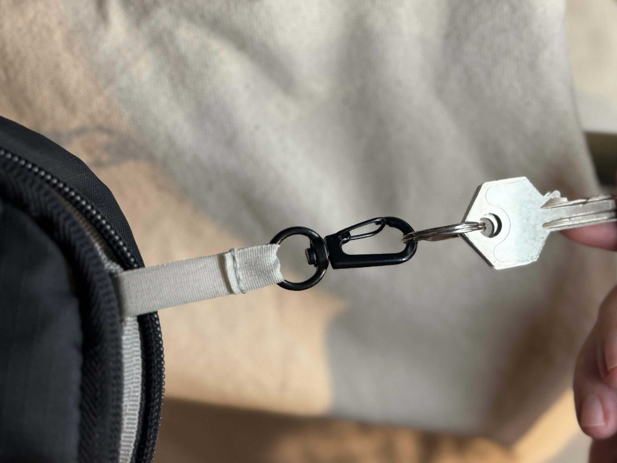 Tiene varios bolsillos internos y externos, además de un clip integrado que asegura tus llaves y evita que se pierdan entre tus cosas.